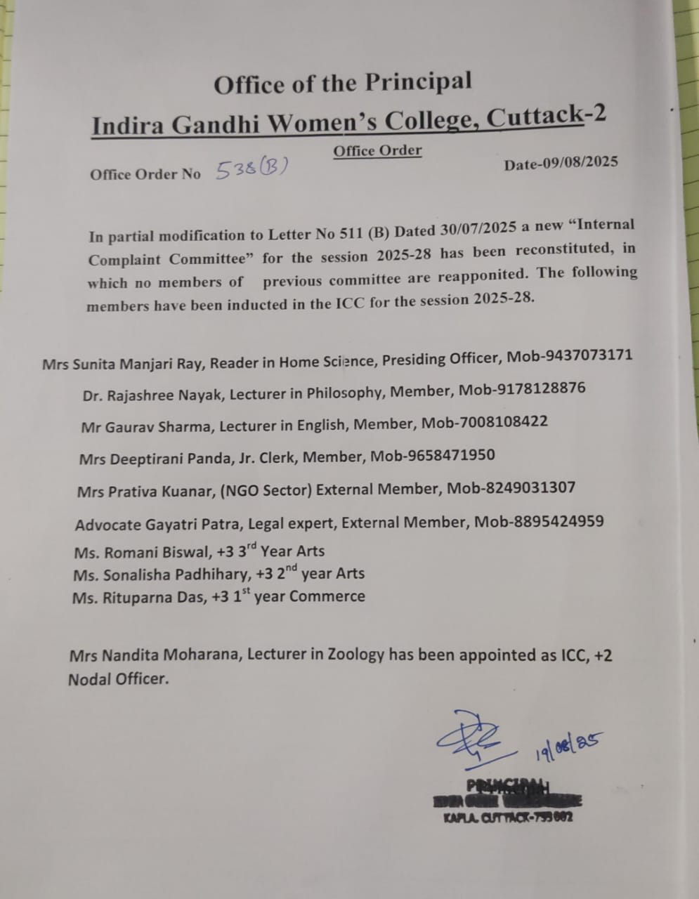 As per the instructions of the Department of Higher Education, Govt of Odisha, the classes of +3 1st year (A.B 2025) students will start from 10.07.2025,Thursday.